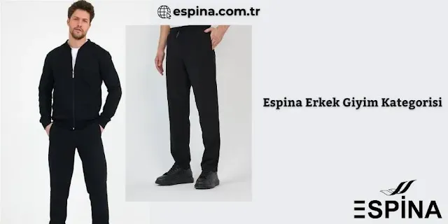 Espina birçok modeliyle erkek müşterilerinin karşısına çıkarken, modellerinin şık ve kaliteli olması anlayışıyla hareket etmektedir. Bu bağlamda erkek giyim kategorisi altında tişört, sweatshirt, eşorfman takımı, eşofman altı, şort, ceket alt kategorileri ile ürünlerini sunmaktadır. Şık bir görünüm isteyen beyefendilerin vazgeçilmezi olmaya adaydır. Kullandığı teknoloji ile birlikte erkek giyimde en iyi kaliteyi amaçlamakta bunu yaparken tasarım konusunda da farklılığını ortaya koymaktadır.